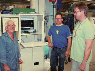 Janos Topcov använder SPS som operatör. Dan Karlsson och Eskil Johansson är mättekniker som stöttar och hjälper till med SPSinförandet vid SAPA Komponenter i Vetlanda.